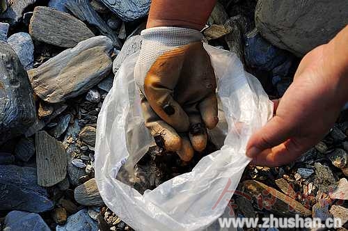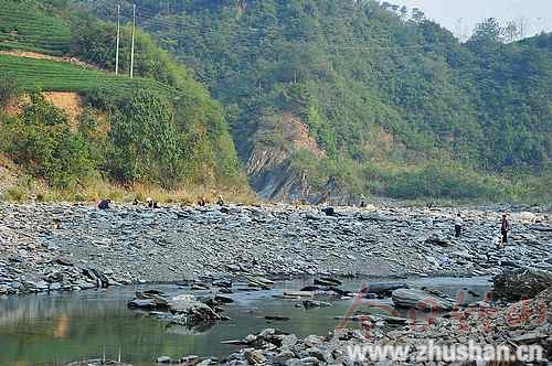 从霍河口到霍河电站这一带的河沙洲上,大约有30多人。只见他们拿着塑料瓶子,或者方便袋,低着头,快速地翻动着石块,时不时往瓶子或方便袋里塞虫。有的刚刚开始捉,有的已捉到半瓶子了,估计有1斤重。