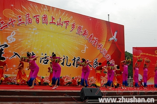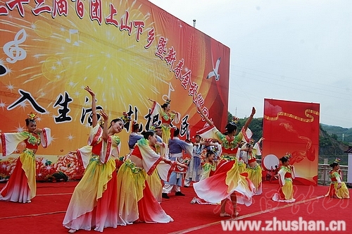 今日竹山网消息 4月23日下午,堵河广场上人头攒动,热闹非凡,经过数月精心打造的“深入生活•扎根基层”惠民演出在此如期上演。活动现场,数千群众自发前来观看演出。来自县宣传文化中心、市艺术剧院、市艺校的近百名演员为观众们奉献了一道精彩纷呈的文艺大餐,《客来啦》、《卖山宝》、《女娲补天》等12个丰富多彩的节目引发了现场阵阵掌声。