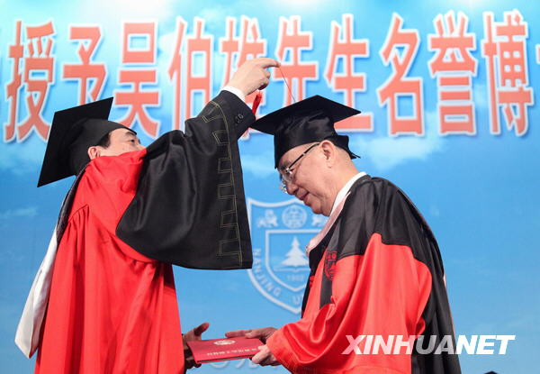 ![]() 5月31日,南京大学授予吴伯雄法学名誉博士学位,南京大学校长、校学位评定委员会主任陈骏(左)向吴伯雄颁授学位证书。新华社记者 邢广利摄 ![]() 5月31日,南京大学授予吴伯雄法学名誉博士学位,南京大学校长、校学位评定委员会主任陈骏(左)向吴伯雄颁授学位证书。新华社记者 邢广利摄 |