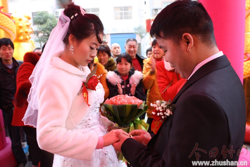 今日竹山网消息 2月9日,潘口乡小漩居委会1组街道装扮一新,到处洋溢着喜庆的气氛,这里正举行着一场简朴却令人难忘的婚礼,不时传来阵阵欢笑声 ,新郎孙兴龙和爱人沉浸在幸福的喜悦中。他们原来是潘口乡农民,通过进城务工,落户新城区,成了新居民。当天是个喜庆的日子,仅该乡就有10多名返乡农民工在新居里喜结良缘。近年来,我县积极加快城市化进程,以产业为支撑,兴建20个涉农居民新社区,1万多户涉农居民陆续进城,实现自己的市民梦。(陈昌荣)