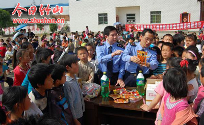 今日竹山网消息 4月29日,县工商局在明钦小学开展“知法知真健康成长”真假食品辨别进校园活动。