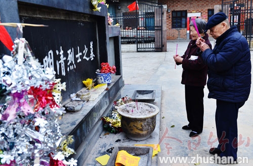 今日竹山网消息 4月1日,85岁的城关居民刘老爹来到许明清烈士墓前上香。许明清原名陈玉虹,浙江省平湖县人,1946年7月任竹山县长,10月10日午夜被国民党军活埋于走马岗。许明清遇害后,刘老爹每年都来为他扫墓,如今已有69年了。(陈剑 冯林)