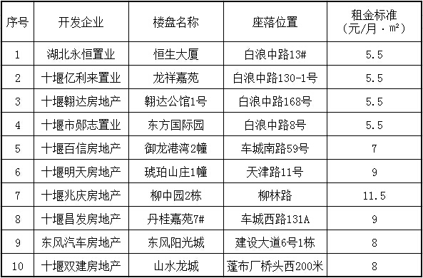 附:十堰城区开发企业配建公租房租金标准