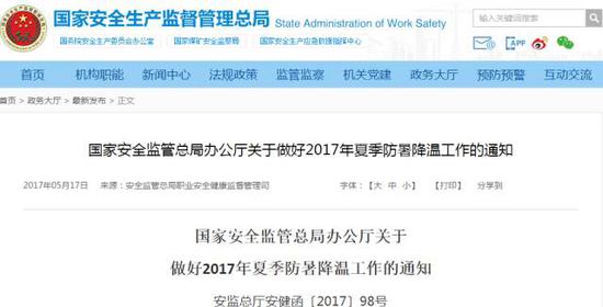 日前,国家安监总局办公厅发布了《关于做好2017年夏季防暑降温工作的通知》,要求最大限度地减少劳动者高温中暑事件的发生。