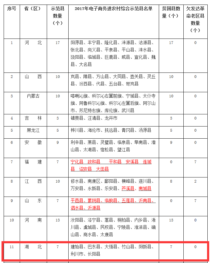 据商务部市场体系建设司消息,最新一批国家电商进农村示范县名单出炉,湖北上榜的7县市在此,快来看看,有没有你的家乡?