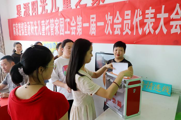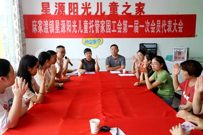 今日竹山网消息 8月12日,麻家渡镇星源阳光儿童托管家园召开第一届第一次会员代表大会。会议选举产生了该托管中心工会第一届委员会。