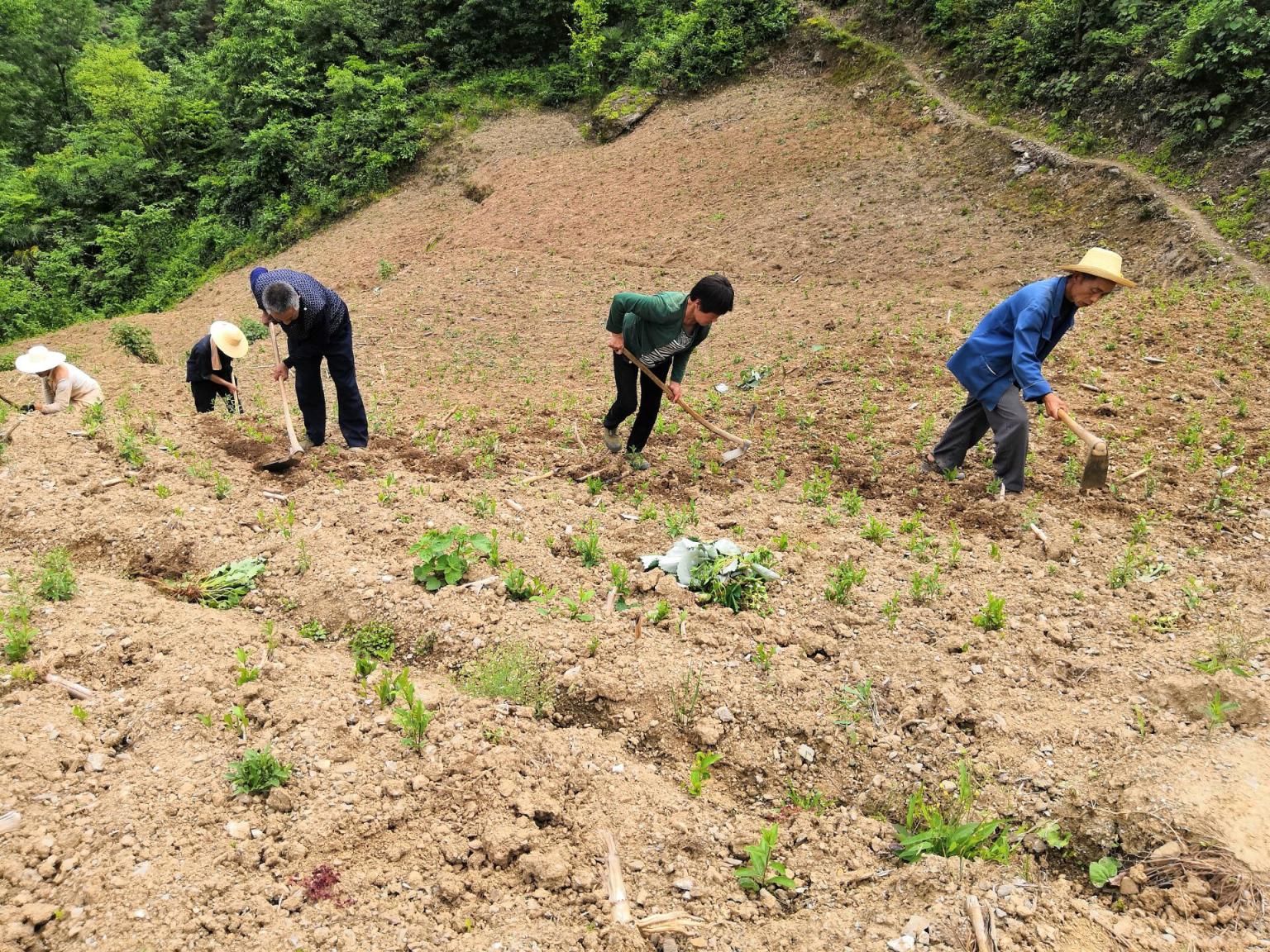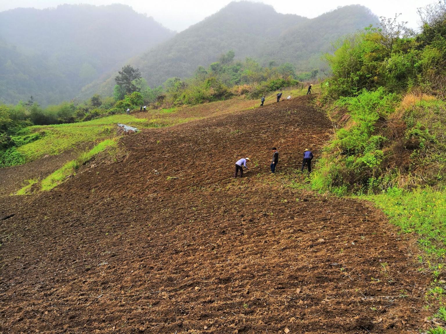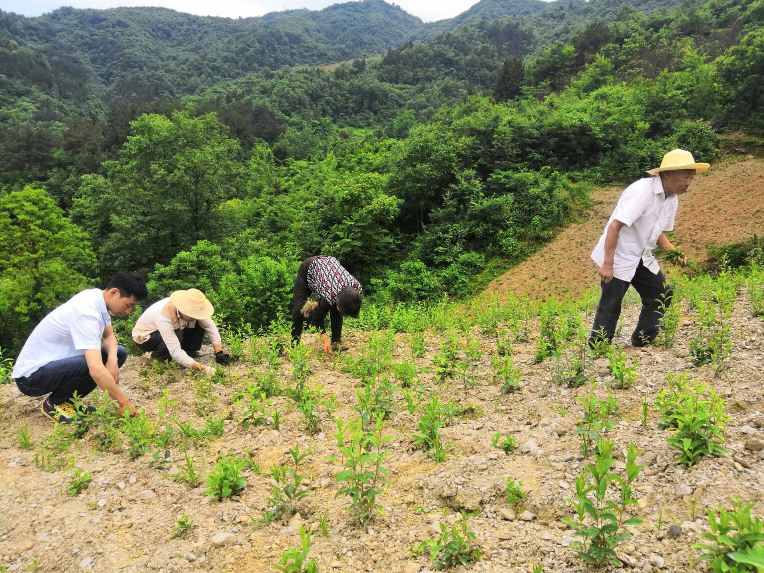 肖兵组织劳力对药材基地进行施肥播种