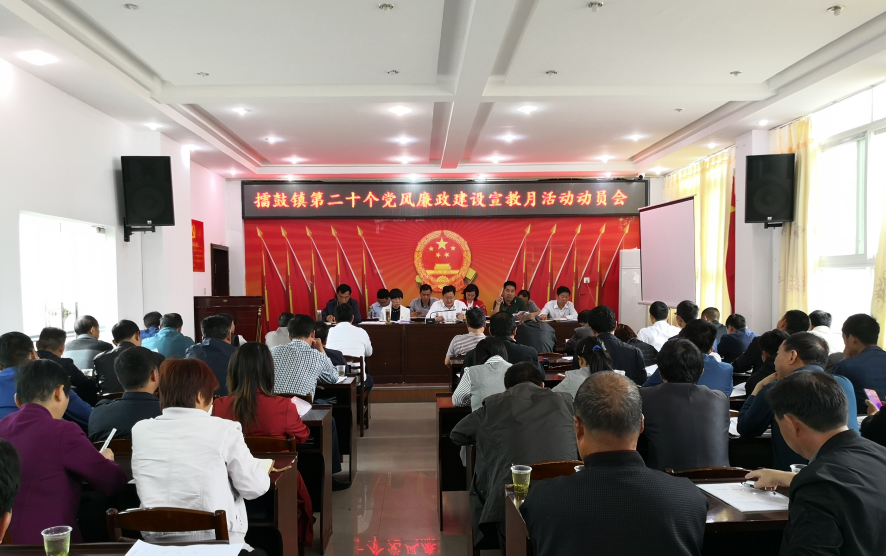 今日竹山网消息 5月20日,擂鼓镇召开第二十个党风廉政建设宣传教育月活动动员会,全体镇干部、镇直机关负责人、村两委干部等共计90余人参会。