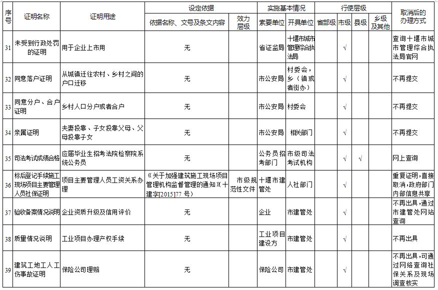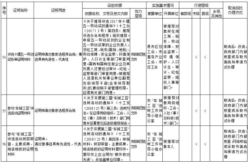 日前,市人民政府办公室在十堰政府网上发布《关于公布市级证明事项取消目录的通知》,为进一步减证便民、优化服务,经市政府研究决定取消56项市级证明事项。