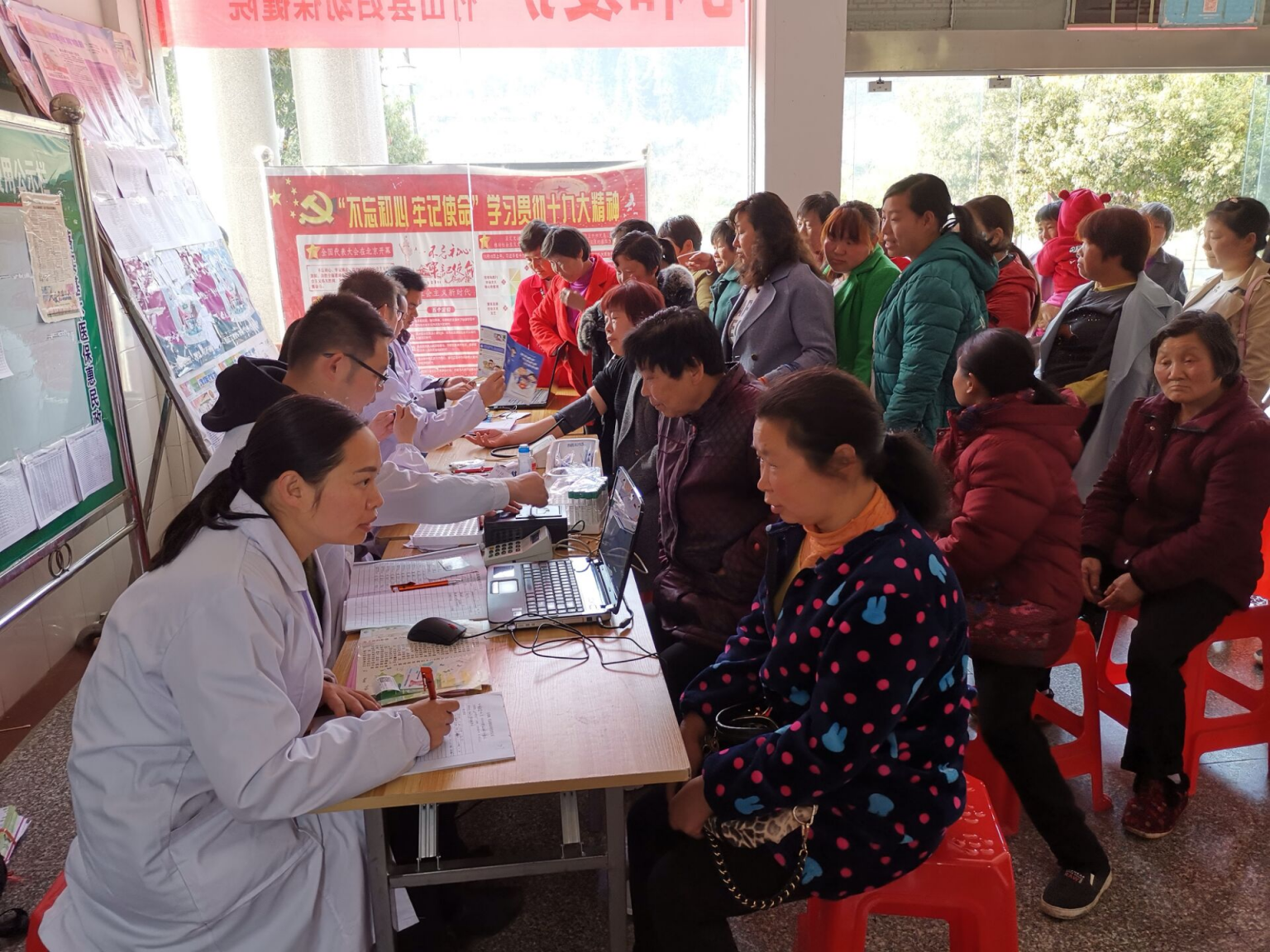 今日竹山网消息 近日来,深河乡卫生院门诊大厅人头攒动,热闹非凡。为贯彻党中央全面建成小康社会提供健康保障,进一步落实省卫生计生厅关于《湖北省妇女“两癌”免费检查实施方案》的通知精神,深河乡党委政府为让老百姓切实感受到不出家门就入“豪门”的大医院医疗服务,积极宣传、营造氛围,主动作为、多方协调,吹响了2019年“两癌”筛查冲锋号,这是本次活动的一个缩影。