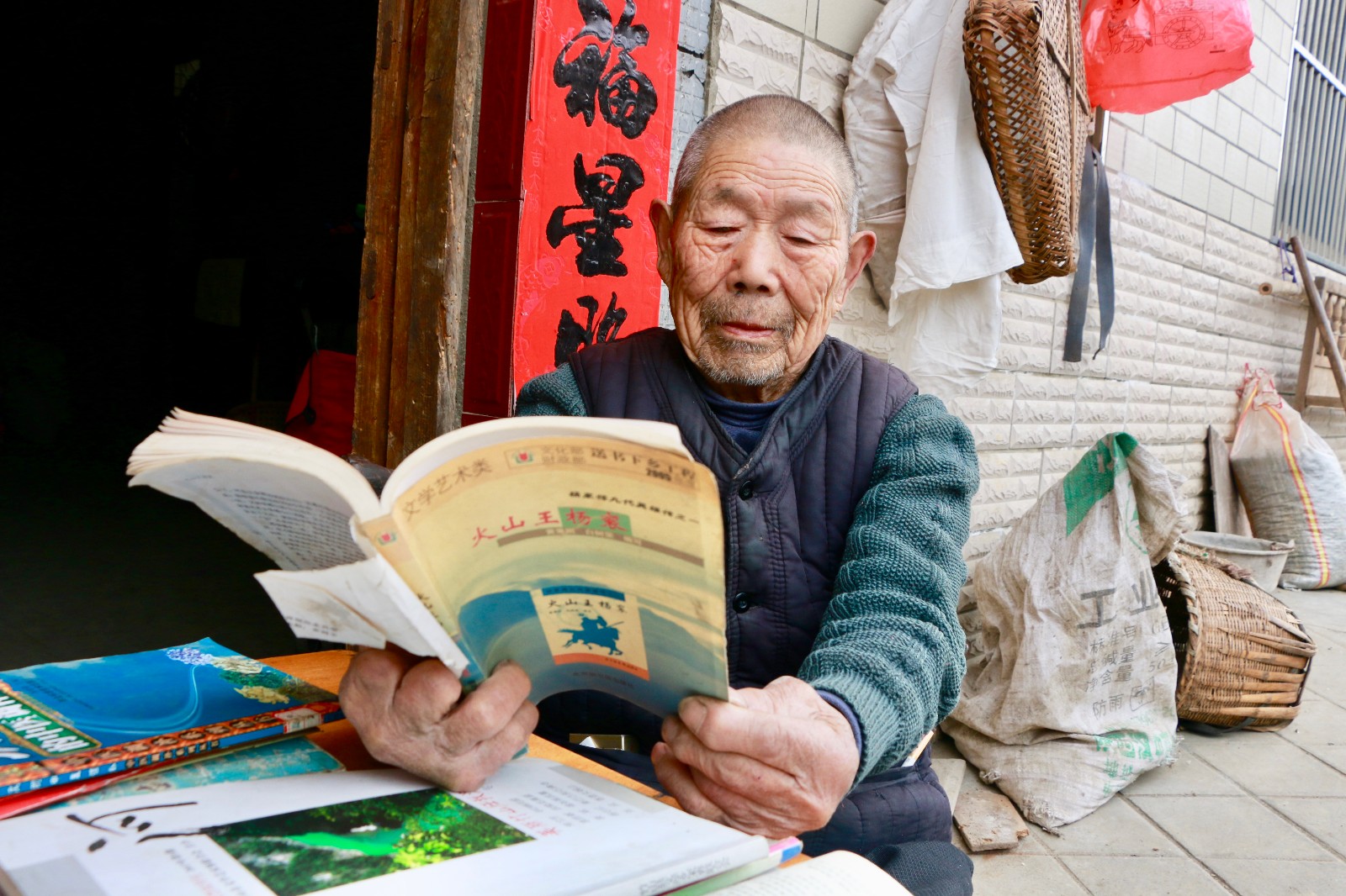 4月23日,时值世界读书日,笔者在麻家渡镇墩梓村看到,一位戴着老花镜的老爷爷,正坐在家门口晒太阳,津津有味的阅读《宋元历史故事》。