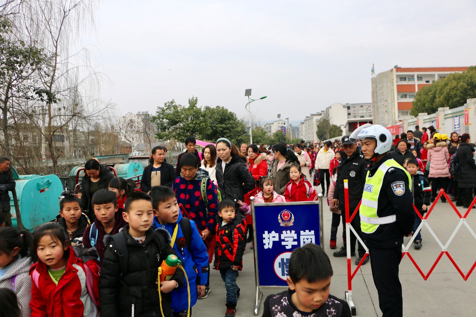 今日竹山网消息 2月25日,笔者在麻家渡镇九年一贯制学校门口见到,当地派出所民警、路长正忙着指挥车辆、带领孩子过马路,这是“护学岗”民警为孩子上下学安全保驾护航的一幕。