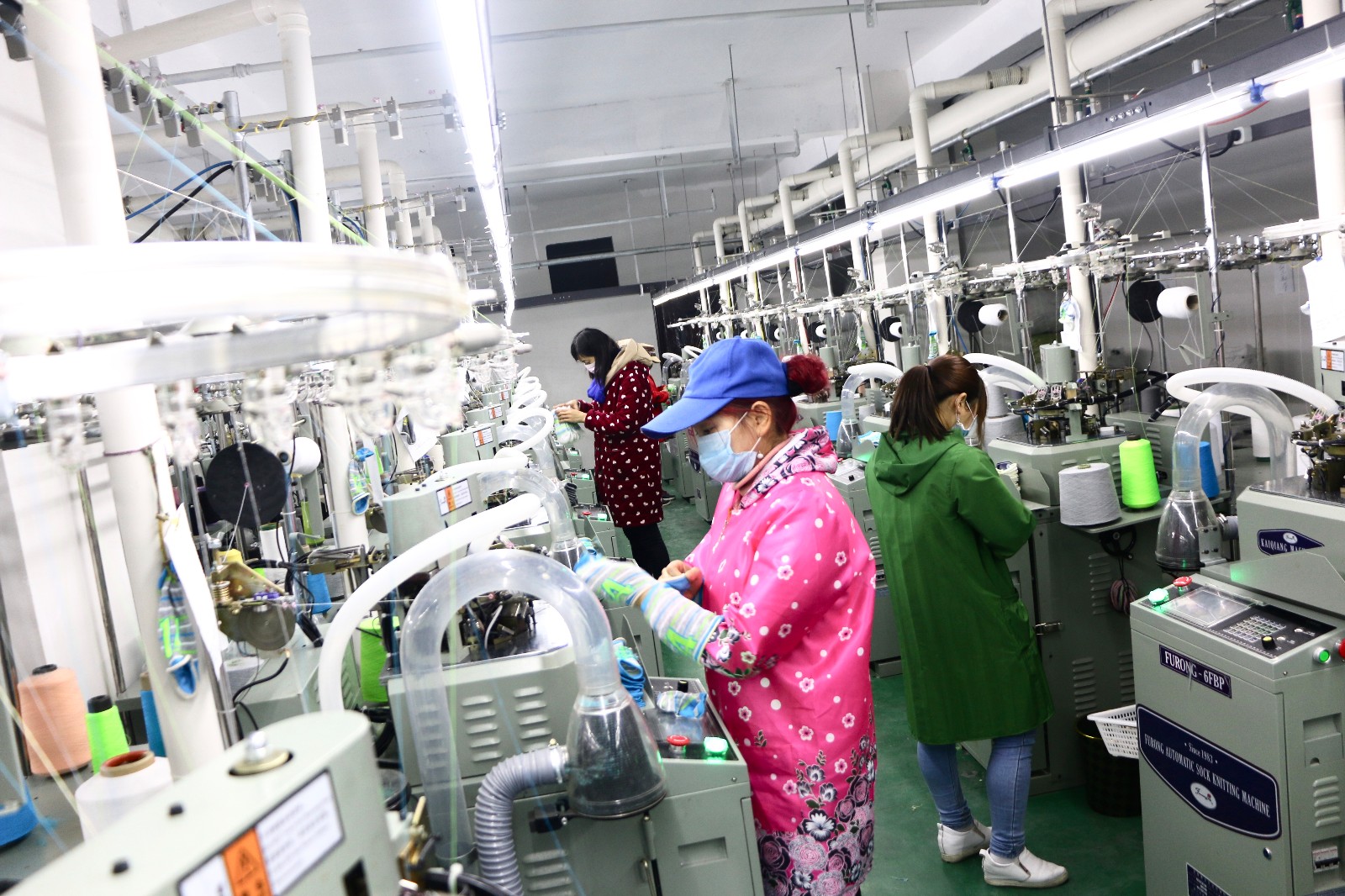 据了解,该车间生产共分为制造、缝头、看袜3道工序,制造工序0.4—0.5元/打,缝头、看袜均为0.2元/打。所有工序均为自动化机器生产,每个工人至少负责12台机器,一台机器每天可制袜150双。2019年以来,该车间已接到制袜订单40400双,订单额约3000万元。