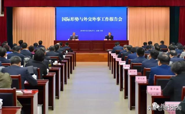2018年12月26日至27日,2018年全国地方外办主任会议在合肥召开,王毅国务委员兼外交部长出席会议并作报告。王毅国务委员以习近平新时代中国特色社会主义思想为指导,结合学习贯彻习近平总书记在庆祝改革开放40周年大会上的重要讲话精神,深入剖析当前面临的百年未有之大变局以及国际形势的新变化新特点,就深刻认识我国发展所处历史方位,准确把握发展的重要战略机遇期新内涵,进一步做好新时代中国特色大国外交进行了全面阐述。王毅国务委员在会上专门提出了2019年外交部支持地方外事工作“六件实事”。