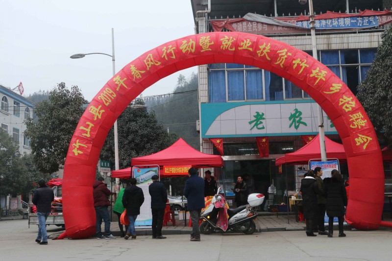 今日竹山网消息 2月12日,由县人社局、招工办联合举办的2019年春风行动暨就业扶贫招聘会在竹坪乡十字街路口举行,该乡17个村组织有就业意向的农民工参加,现场与县工业园招工企业面对面咨询,初步达成就业意向100人。