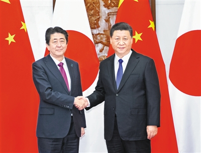 习近平欢迎安倍正式访华,赞赏安倍近年来多次表明改善和发展中日关系的积极意愿。习近平指出,中日是近邻,两国利益高度交融。作为世界主要经济体和有重要影响的国家,中日关系长期健康稳定发展,符合两国人民根本利益,也是本地区和国际社会普遍期待。今年是中日和平友好条约缔结40周年。1978年,两国老一辈领导人缔结和平友好条约,以法律形式确定了两国持久和平友好大方向,为双方开展互利合作、谋求共同发展以及妥善处理历史、台湾等敏感问题提供了坚实遵循和保障。在双方共同努力下,当前中日关系重回正常轨道,重现积极势头。这值得双方共同珍惜。双方要遵循中日四个政治文件确立的各项原则,坚持和平友好大方向,持续深化互利合作,推动中日关系在重回正轨基础上得到新的发展。
