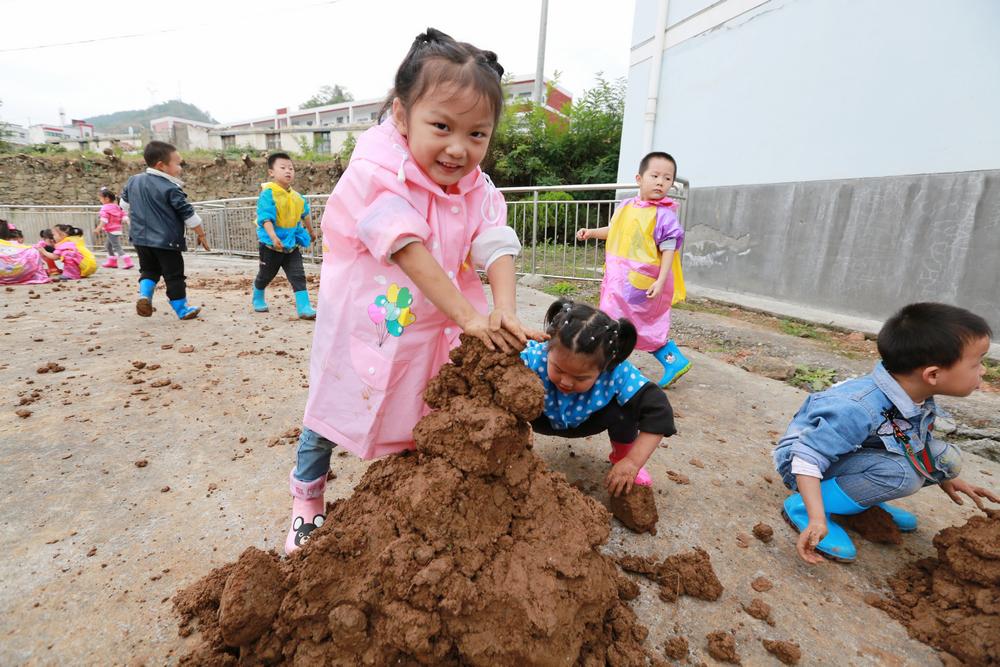 今日竹山网消息 9月30日,宝丰镇中心幼儿园的孩子们正在开展“玩泥巴”、挑花篮、抬花轿、投球等户外自主游戏活动,不时传来开心的欢笑声。宝丰镇中心幼儿园充分创造机会和条件,不断创新游戏形式,鼓励和支持幼儿在自然、健康的户外天地中自主、快乐的游戏。