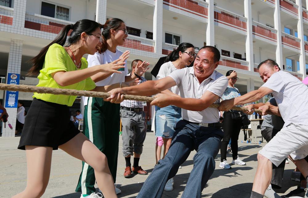 今日竹山网消息 为提高广大教职工的身体素质和健康水平,进一步提振教职工的精神面貌,8月28日,宝丰镇教职工运动会在宝丰中学紧张进行。该镇教育工会以“我运动、我健康、我快乐、我幸福”为宗旨,鼓励全镇400余名教职工积极参加拔河、篮球、羽毛球、乒乓球、立定跳远、仰卧起坐、跳绳、踢毽子、50米、400米等“阳光体育”比赛活动。本次运动会分设男女青年组、中年组、老年组6个组,广大教职工在运动场上昂扬向上、顽强拼搏、团结互助、携手共进的热情和干劲,转化为强师德、保安全、促发展、推课改、抓质量的行动自觉,增强了教职工的凝聚力、向心力和战斗力,从而激发大家以更加昂扬的斗志、强健的体魄投入到新学期的教育教学工作中去。 (朱本双)
