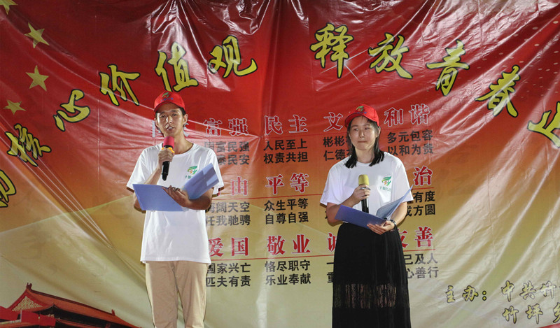 今日竹山网消息 8月13日晚 6时,竹坪乡周家湾村文化广场上音乐刚响起,村民们都像赶集似的从四面八方涌向文化广场,来参加即将举行以“弘扬社会主义核心价值观,释放青春正能量”为主题的文艺晚会。