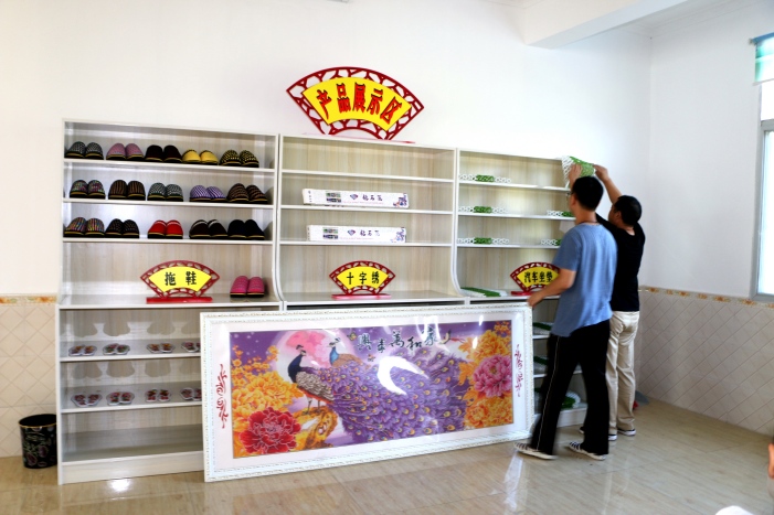 该工厂于6月份建成运营,建筑面积600余平方米,现已形成了集培训、加工、销售于一体的工厂流水线。该扶贫工厂辐射宽坪、安河口、安河塘、周家湾等村民,现有工人280余人,仅安河口村有110人,其中贫困户70人。工厂现有4条生产线,分别是手工拖鞋、汽车坐垫编制、手工刺绣和手工饰品。结合本村现有的2家电商,负责从事网络购销及销售产品信息收集,由村党支部牵头与外地商家联系,开展电商网络营销。