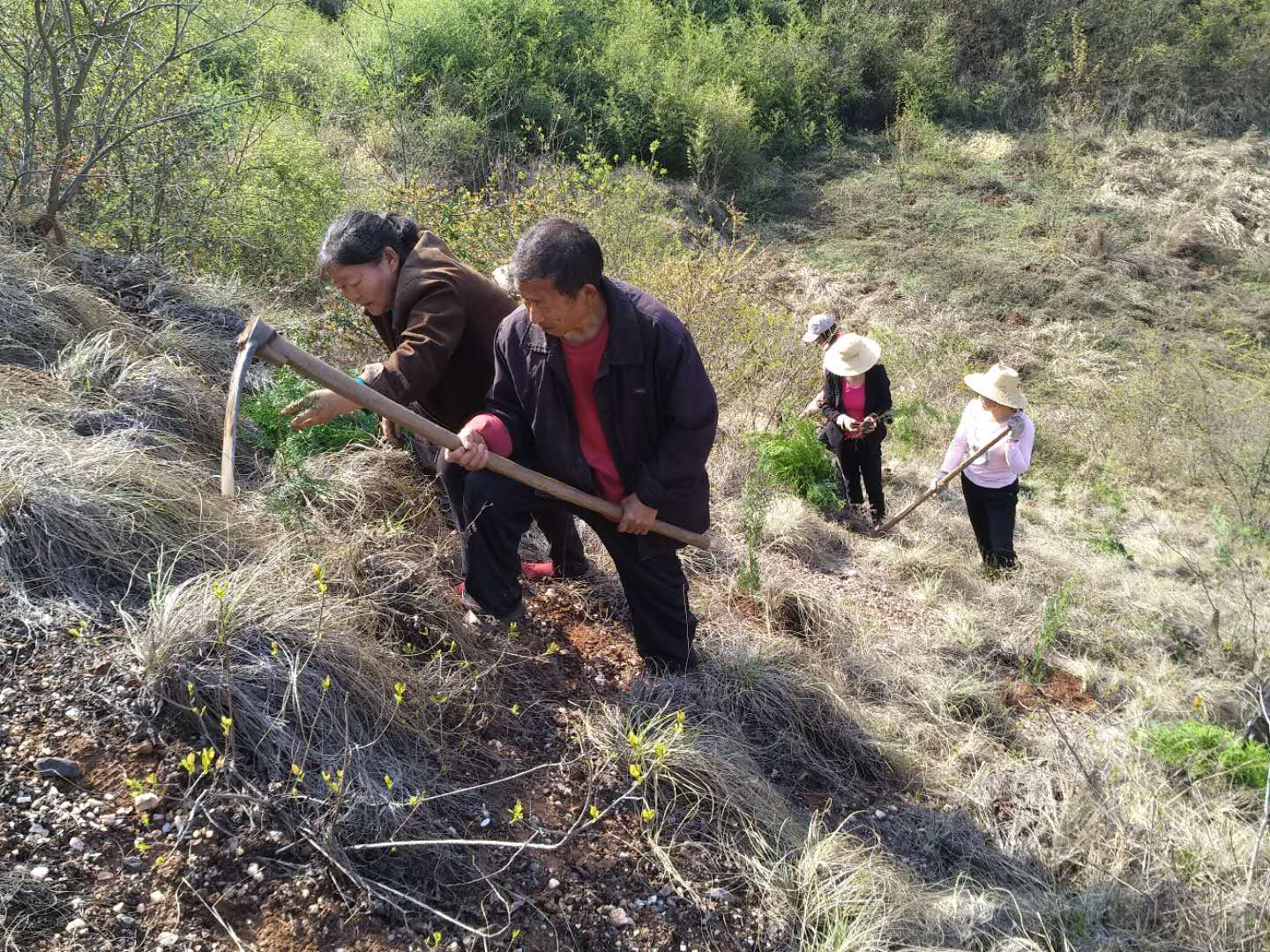 今日竹山网消息 3月27日以来,在擂鼓镇多处荒山上,乡亲们挑树苗、挖窝子,忙忙碌碌。原来,这是擂鼓镇筑牢绿色生态墙今春抢抓黄金时节打响的精准灭荒攻坚首战,这是擂鼓镇继春季启动义务植树活动、乡村道路绿化工程以来又一重要造林工程。