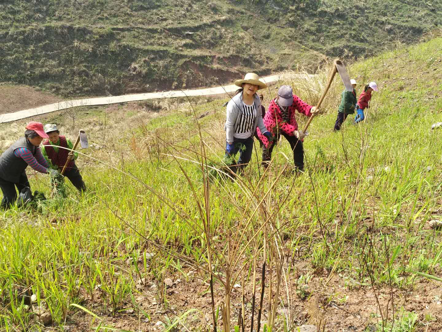 2018年是竹山县精准灭荒工程三年行动方案的开局之年,在接到上级精准灭荒任务后,镇政府高度重视立即会同林业站技术人员实地踏勘,历时数日精准采集了灭荒工程所需的第一手现场信息,制定了科学合理的灭荒方案。方案拟定2018年全镇精准灭荒工程采取“两步走”战略:第一步,在当前造林黄金时间节点先将不用清杂可以快速栽植下地且面积较大的地块组织充足劳力突击完成造林,目的是最大化保证树苗成活率节约成本;第二步,芭茅草太深清除难度大不能快速栽植要打硬仗的地块,坚决先清掉芭茅草再造林,目的是必须保证工程质量。