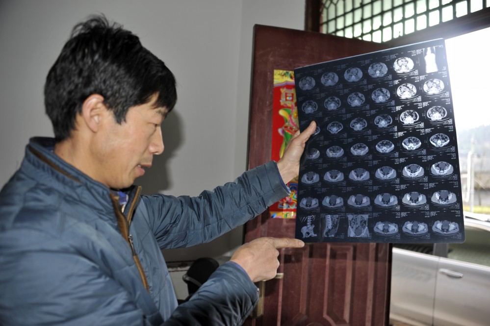 李道文很快被大家送到秦古镇卫生院,医生见他伤势较重,建议尽快送上级医院救治。经县医院检查,李道文腰部突骨骨折。医生说,做手术可能会影响行走,建议在家吃药静养,三年内不能干重活,如果用力过度会导致腰部突骨折断,再也无法行走。在接下来的两个多月里,李道文腰部没有任何知觉,吃喝拉撒全靠妻子照顾。记着采访时,李道文的妻子张彩云说,虽然李道文现在表面上看不出有什么问题,每到天气变化时,受伤部位痛的厉害,经常整夜不能合眼。