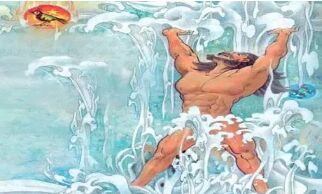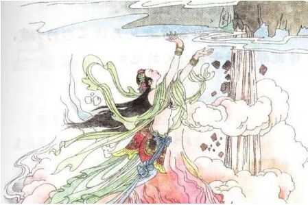 两个英雄人物,水神共工氏和火神祝融氏,在不周山大战,结果共工氏因为大败而怒撞不周山,引起女娲用五彩石补天等一系列轰轰烈烈的动人故事。