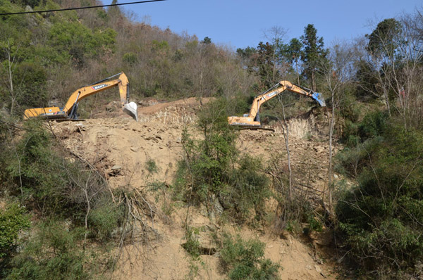 今日竹山网消息 3月22日,记者在溢水镇邵家沟村看到,几台挖掘机正在开挖十巫高速横岩寨隧道,各施工现场到处都是一片繁忙的作业景象。