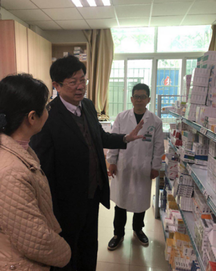 林绍彬(左二)到闽清县社区服务中心调研医保药品目录情况。本人供图