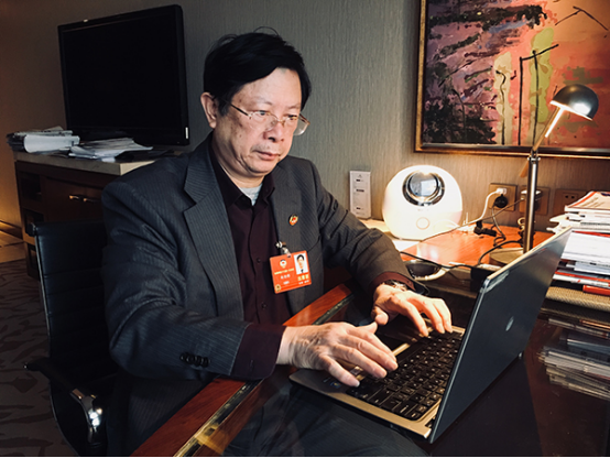 林绍彬正在认真准备全国政协十三届一次会议的提案。本人供图