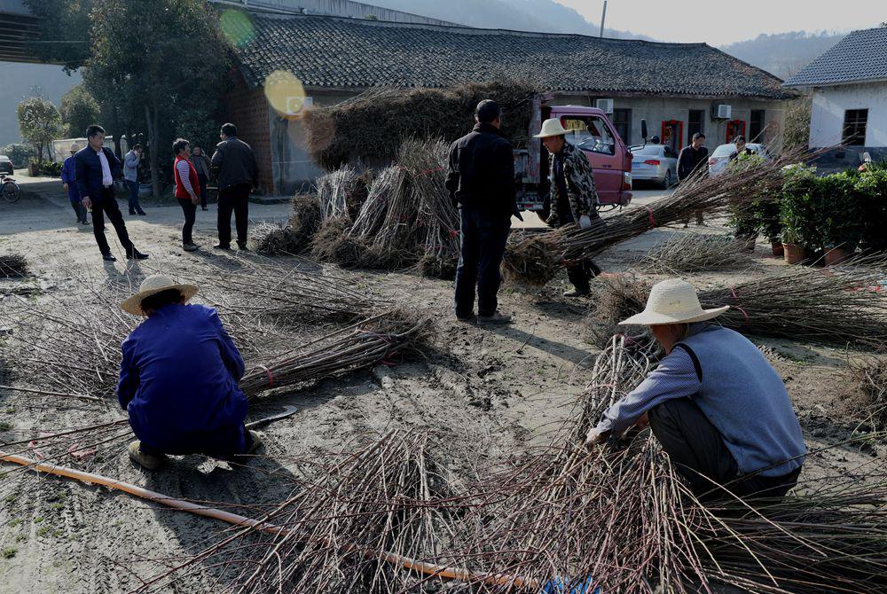 今日竹山网消息 3月9日,竹山县东川苗圃工人正在为桃树苗木分级、扎捆、短截,准备装车外运。近年来,竹山县东川苗圃大力培育特色苗木,坚持苗木发展与乡土树种和多彩树种相结合、与林特产业发展相结合、与美丽乡村及景观设计建设相结合,培育桃树、梨树、拐枣、枇杷、猕猴桃、栾树、桂花、紫薇等多个树种供应市场,满足县内外植树造林需求,年出圃各种苗木60余万株。(程平 王华 吴波)