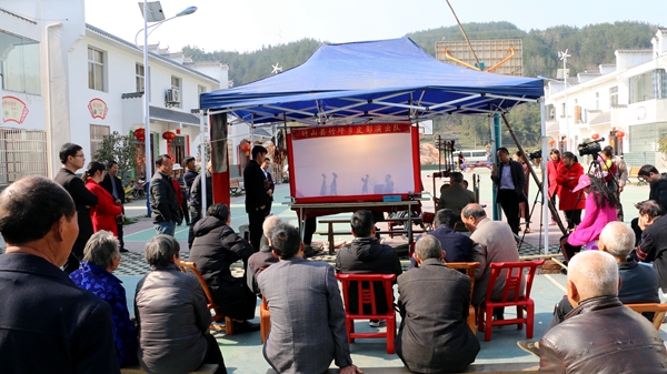 今日竹山网消息 3月13日,竹山县竹坪乡安河口村文化广场上来了四位年过半百的特殊老人,他们是竹坪乡非物质文化遗产“皮影戏”高腔传人,要为村民们带来了一场精彩的视听盛宴。