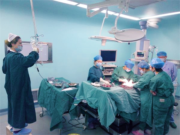 鉴于情况危急,县人民医院立即启动应急预案,通知手术室、麻醉科、输血科等相关科室立刻做好术前准备,由产科主任李晓霞主刀,产科住院总医师王辉任第一助手,马上对患者实施紧急手术,确保以最佳方案、用最短时间、尽最大努力挽救患者生命。经过3000余毫升的血液输入和三个多小时的紧张手术,患者破裂的子宫得到修补,腹腔内的死胎及血液、积液等异物全部被清理干净。此时患者血压逐步回升,心跳、呼吸、脉搏也渐渐好转,苍白的面容浮现出一抹红润,参与抢救的全体医护人员这时才长舒一口气,为再一次成功挽救一个鲜活的生命而感到由衷的高兴。