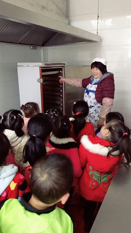 今日竹山网消息 幼小的孩子总是喜欢围在妈妈的身边,看着妈妈做饭做菜。在幼儿园里,孩子也喜欢和别人玩“娃娃家”,拿着玩具锅铲煮饭、炒菜,玩得不亦乐乎!为了更好地满足孩子们的好奇心,使孩子们更加直观地了解厨师的工作内容,12月7日上午,护驾幼儿园组织大班孩子们参观了幼儿园的食堂。厨师杜彩萍介绍了食堂的工作环境,及食堂的设备,还介绍了厨师一天的工作流程。通过此次参观,孩子们了解了厨师工作的辛苦,同时也知道了吃饭时要更加爱惜饭菜。(张萌)