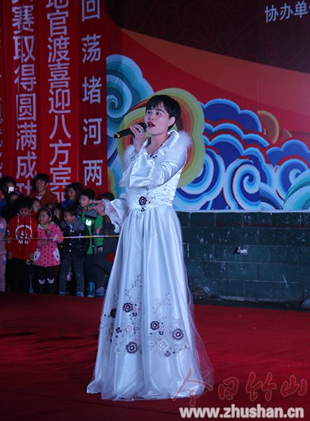 当晚7时30分,由官渡镇李传映等表演的歌伴舞《开门红》正式拉开了篝火晚会文艺汇演的序幕。晚会中,省民族歌舞团的二胡萨克斯联奏《赛马·太阳最红毛主席最亲》、双人舞《天空》、男生小号《船工号子》,竹溪县向坝乡山歌对唱《郎从高山打伞来》、桃源乡《四季歌》,丹江口市官山镇《十杯子酒迎客来》,房县中坝乡民歌独唱《我训朗》选段,我县楼台乡《八仙拜寿》、城关镇女声独唱《呼伦贝尔大草原》、官渡镇歌伴舞《郎在高山喊情妹》等12个民间文艺节目,精彩纷呈,高潮迭起,赢得了在场观众的阵阵喝彩和热情掌声。