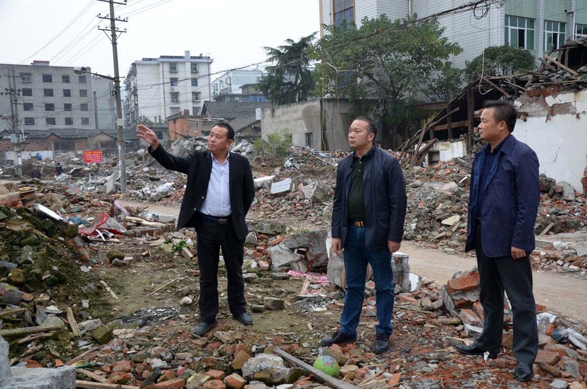 镇党委书记刘甲华(左二)督办安置点建设。