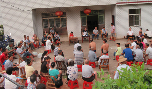 召开群众会,评议贫困户。