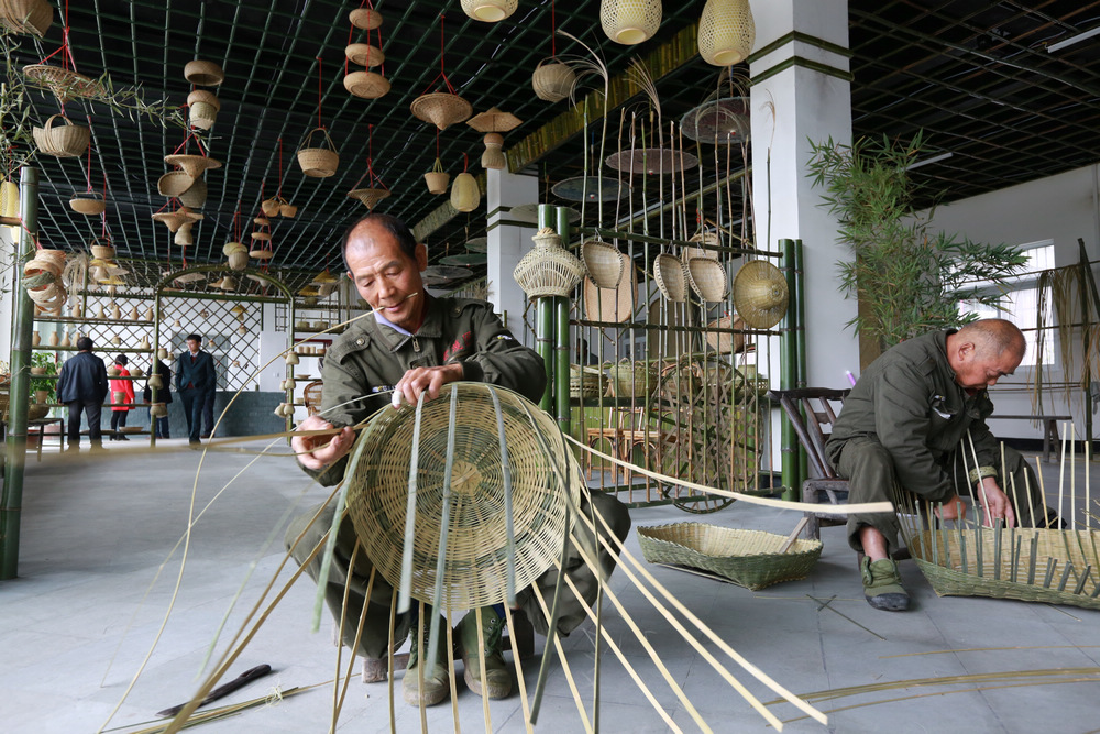 今日竹山网消息 10月19日,在溢水镇东川村老篾匠竹编馆里,老篾匠们正在忙碌着手工制作篾编工艺品。该村充分发挥地方竹资源优势,建成老篾匠竹编馆,纯手工制作的篾编工艺品涵盖竹编团筐、谷筛、小盘、斗笠、圆篮、竹箱、凉席、竹簸箕等数十种篾编实物。营造出浓郁的“竹”文化氛围,传承了老篾匠传统老手艺,成为助推绿色竹编产业,带领群众脱贫致富的好项目、好产业。 (朱本双 摄)