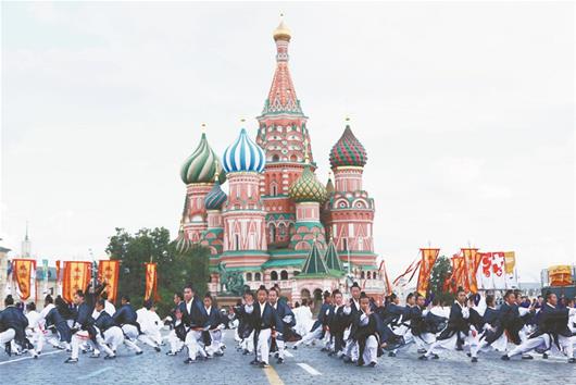 图为:武当功夫团在莫斯科军乐节上表演《太极》