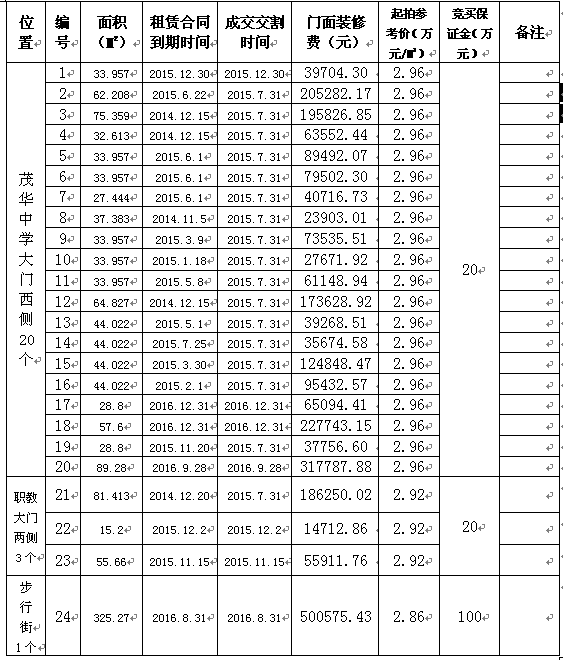 经竹山县房地产测绘中心仔细比对核实,现将2015年4月26日所公示的人民路-步行街24个门面,其中茂华中学大门两侧20个门面有4个门面(9、10、13、14号)因房屋结构不明,导致测绘数据有误,现予以更正: