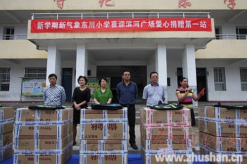 在东川小学,源生公司爱心人士为该校273名学生送上了新书包、笔、练习本、文具盒等学习用品,并为该校30余名教师送上了新教具。该校师生表示将以热情工作和勤奋学习来回报社会的关爱,捐赠现场洋溢着温馨愉悦的气氛。
