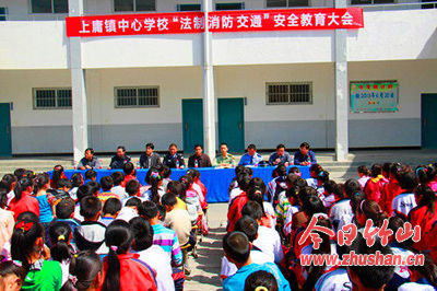 上庸镇中心学校召开“法制、消防、交通”安全教育大会