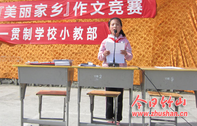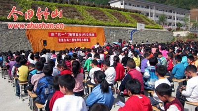 今日竹山网消息 为了迎接“五一”国际劳动节,4月25日下午官渡九年一贯制学校小教部的全体师生在操场上举行了“迎五一”作文朗诵比赛。