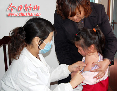 今日竹山网消息 4月10日,县实验小学请县疾控中心给学生打水痘疫苗。连日来,我县各学校按照县教育局统一要求,给学生讲解H7N9的预防,用含氯消毒液对校园进行消毒,对教室、清洁区,办公室进行“搬家式”大扫除,同时对学生进行健康教育。(袁斌 陈铃 唐金虹)