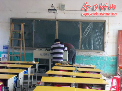 今日竹山网消息 3月4日,安装电子白板的5名专业技术人员来到了得胜小学,在全体师生的积极配合下,迅速投入到安装中。据介绍,一周后,该校的电子白板能正式投入使用。(万飞)