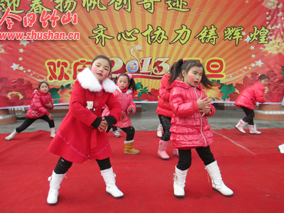 今日竹山网消息 迎春扬帆创奇迹,齐心协力铸辉煌。12月29日,潘口小学校园内喜气洋洋,热闹非凡。全校千余名师生、家长欢聚一堂,载歌载舞,庆祝2013年元旦佳节。歌曲《祖国花朵爱祖国》《少年少年祖国的春天》等表达了当代少年儿童热爱祖国热爱生活的情感。舞蹈《拉丁舞》《踏浪》等充分展示了孩子们多姿多彩的童年生活。相声《食指与拇指》等表现了当代儿童多才多艺。20余个节目,精彩纷呈,高潮迭起。集中体现了该校学生积极进取、健康向上的精神风貌,寄托了孩子们对新年的美好祝愿,师生们欢歌笑语喜迎新年的到来。(王定生 )