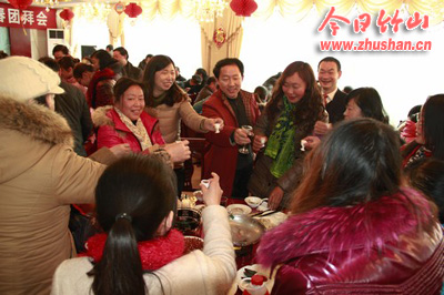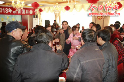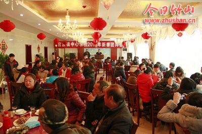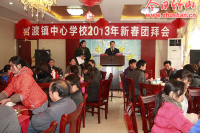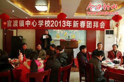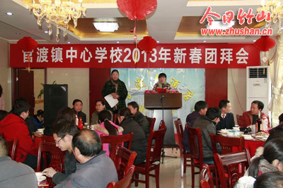 今日竹山网消息 祥龙腾云辞旧岁,金蛇献瑞迎新春。12月29日,官渡大酒店张灯结彩,喜气洋洋。官渡镇中心学校2013年新春团拜会在这里隆重举行,官渡镇党委书记、人大主席伍盛国,镇长张伟成与全镇132名教职工欢聚一堂,共贺新年。团拜会由镇党委宣传委员贺华主持。