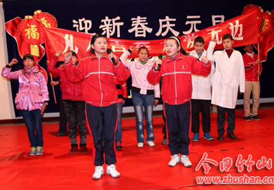 今日竹山网消息 12月29日,上庸镇九年一贯制学校举行“迎新春庆元旦”文艺晚会,近2000余名师生及学生家长到场观看,元旦晚会精彩纷呈、看点颇多。