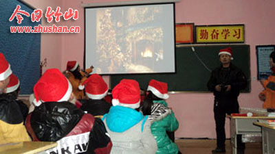 今日竹山网消息 12月23日下午,柳林乡公祖小学校园里一片欢腾,充满着浓郁的节日气氛,孩子们奔走相告:“一年一度的圣诞节来临了,‘麦田’的叔叔、阿姨也来啦!我们不仅可以和叔叔阿姨一起过节,还可以再一次感受来自社会大家庭的关爱……”